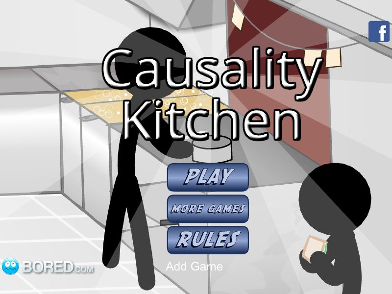 Classic (Flash) adventurefood Causality Kitchen is here and it's a recipe for disaster. Trust no vegetable and keep your eye out for any knives. The stickmen cook their last meal while you take them out one by one. Don't let them see each other die! Instructions Use mouse to play
