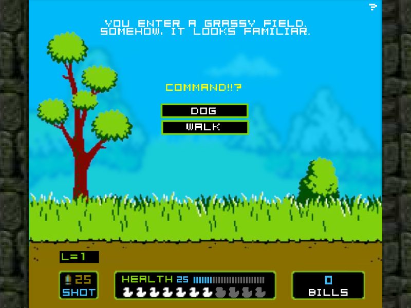 Developed by: Destructoid • Classic (Flash) skillgunweapons This game is a mix of three games: Doom, Dragon Warrior and Duck Hunt. Take down the ducks before they will visciously attack your dog, or even yourself. So take your Nintendo Zapper Light Gun (or your mouse) and learn those evil ducks a lesson. Instructions Shoot all that moves, apart from your dog.