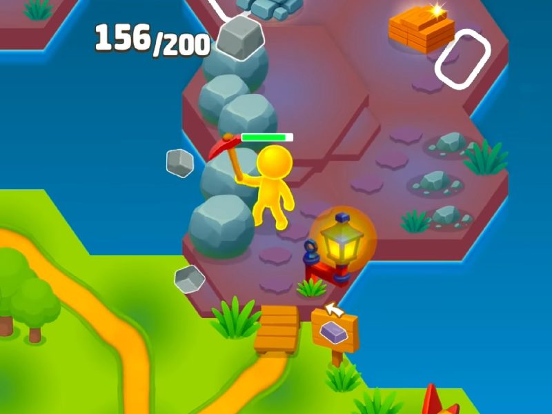 ⛏️ Mine rocks, trees and crystals to collect resources.