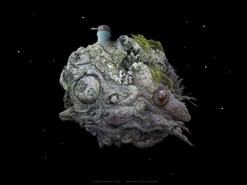 Classic (Flash) adventurealiens Samorost is point-and-click andventure set in a surreal environment, similar to Myst. In Samorost 1 your task is to help the little gnome in white to save his driftwood planet from collision with another driftwood planet. The link on this page points to Samorost version 1. You can also play Samorost 2 in which you need to save your dog who has been stolen by aliens. Instructions